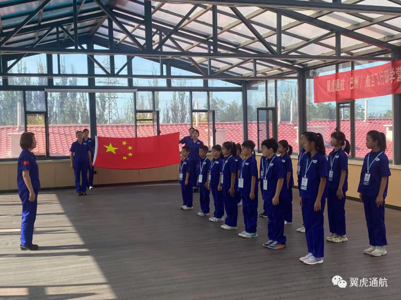 伴着徐徐微风,迎着明媚朝阳,孩子们身着蓝色飞行作训服,佩戴营员专属卡片,宛如化身为一名名小小飞行员,他们目光坚定,迈着铿锵有力整齐的步伐,面对着迎风飘展鲜艳的五星红旗,齐声高唱着庄重肃穆的国歌,开始了他们充满挑战新奇的航空飞行假期营生活,大胆追逐心中的小小飞行梦,乘风飞翔!