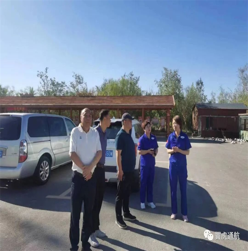 新疆翼虎通用航空有限公司运控中心陈靓主任、翼虎通航(巴州)航空飞行研学营地杨悦华经理,新疆途虎旅游教育研学部主任张宏陪同参观考察。